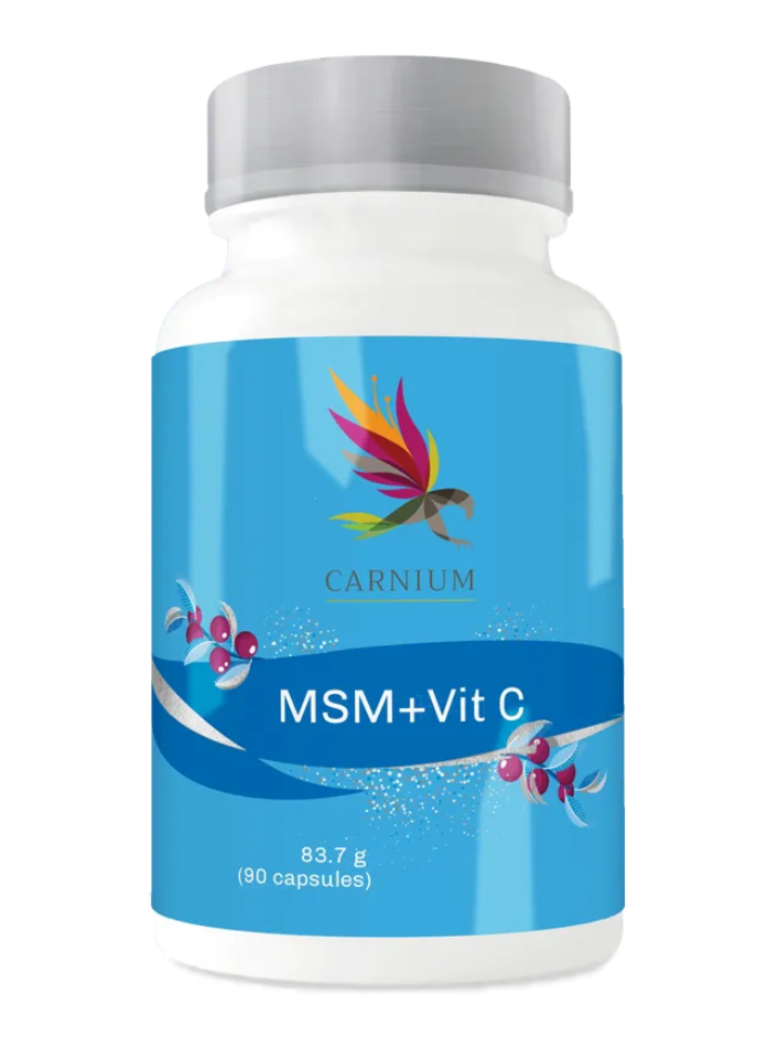 Το MSM+Vitamin C είναι ένα διατροφικό συμπλήρωμα που συνδυάζει MSM (μεθυλοσουλφονονικό μεθάνιο) και βιταμίνη C για ολοκληρωμένη υποστήριξη των αρθρώσεων, του συνδετικού ιστού, του δέρματος και του ανοσοποιητικού συστήματος. Το MSM είναι φυσική πηγή θειού, το οποίο παίζει κρίσιμο ρόλο στην υγεία των αρθρώσεων, στη δημιουργία χόνδρου και στην αναγέννηση του συνδετικού ιστού. Επίσης, το MSM συμβάλλει στη βελτίωση της ελαστικότητας του δέρματος και στη μείωση ατελειών όπως η ξηρότητα και η έλλειψη λάμψης. Η βιταμίνη C υποστηρίζει τη δημιουργία κολλαγόνου, το οποίο είναι απαραίτητο για υγιές δέρμα, αρθρώσεις και συνδετικό ιστό. Λόγω των αντιοξειδωτικών ιδιοτήτων της, προστατεύει τα κύτταρα από το οξειδωτικό στρες και ενισχύει τη λειτουργία του ανοσοποιητικού συστήματος. Μαζί, το MSM+Βιταμίνη C δρουν συνδυαστικά για βελτίωση της κινητικότητας των αρθρώσεων, λαμπερό και υγιές δέρμα και ολοκληρωμένη υποστήριξη του οργανισμού.